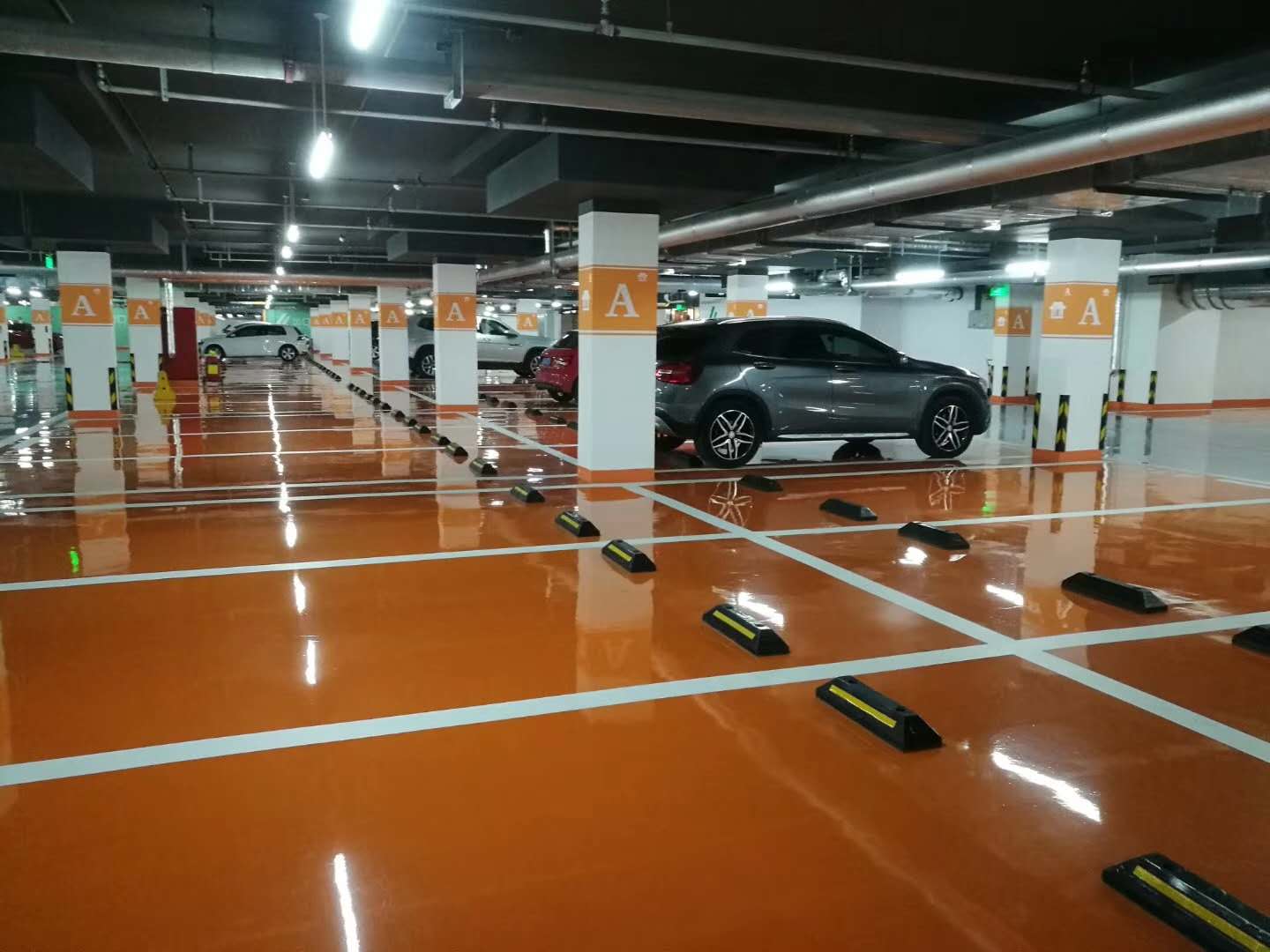 5.維護成本低:車庫地坪的后期維護成本大大降低,主要表現在清潔維護上,只需要很少的維護人員拖地清潔即可,不需要經常水洗等等。同時環氧地坪不會像水泥硬化地面吸收光線,所以照明用電量也會減少。鋪設環氧樹脂地坪后,因停車場地面粉塵的減少,降低了停車場通風設備運行的負載,使通風設備的運行耗能也相應減少,設備運行的壽命也相應得到延長,降低用電設備的成本。