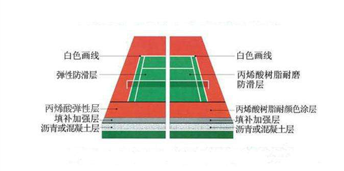 硬地丙烯酸面層 彈性丙烯酸面層產(chǎn)品結(jié)構(gòu):